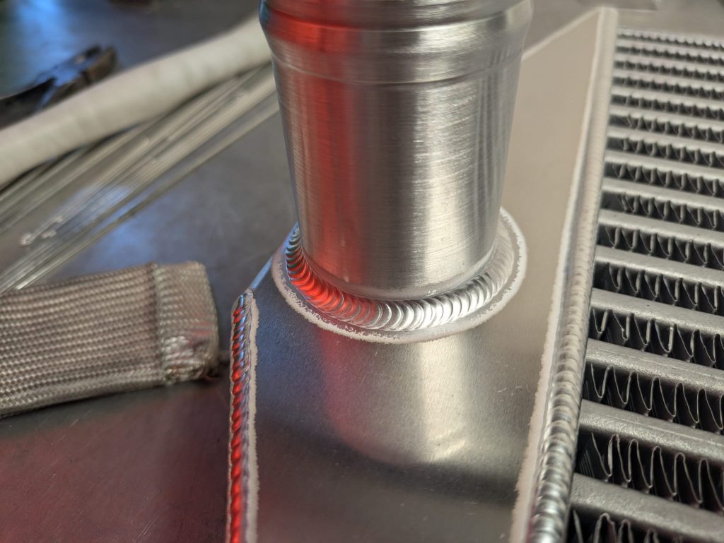 TIG all the way out crack repair on this Valtra loader arm. As there were hydraulic lines nearby, to save disconnecting they were covered by an aluminium heat shield.